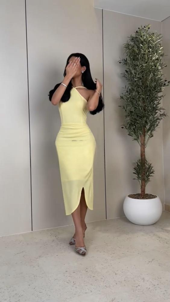 فستان أصفر أنيق… لمسة من البهجة والفخامة في سهرتك